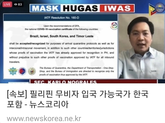 ■ 이민국은 필리핀이 국경을 개방한 후 외국인 8,000명이 입국했다고 목요일 저녁 밝혔습니다. 전체 입국자중 27-30%가 외국인입니다. 입국을 시도하던 4명의 외국인은 서류 미비로 입국이 거부되었습니다.